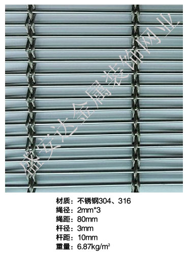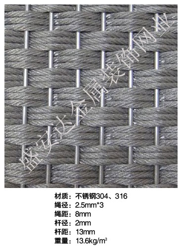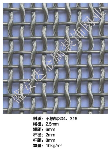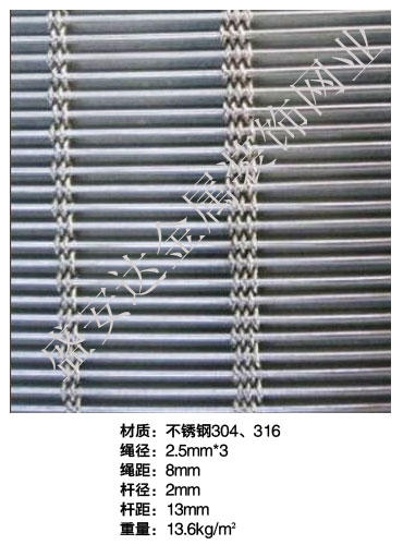 合股裝飾網本產品,采用優質不銹鋼、黃銅、磷銅編織而成,從拉絲、捻股、合繩、拋光、漂洗、織網、銷售及售后服務等方面入手,逐漸形成生產與銷售一條龍服務。產品具有經久耐用,華麗高檔,科技含量高等特點,被廣泛應用于高級建筑的窗簾、吊頂、樓梯、電梯、豪華辦公大樓、賓館、豪華舞廳、營業大廳等建筑物的室內外裝飾,在燈光照射下金碧輝煌,典雅精致。